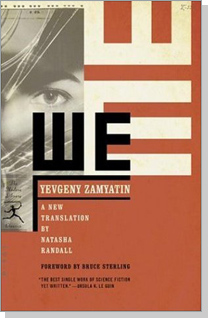 This is one of the weirdest books I’ve ever read. I finished reading it a couple days ago; I’ve been pondering it since and still I can’t make heads or tails of it. Seriously, I think about three quarters of the book went straight over my head. Not just in the thematic, symbolic way of things, but in the plot. Really, the general plot was fairly simple. The book takes place many centuries in the future, with a race of people who work like mathematical machines. They live inside a city covered by a glass dome wall, and all of their buildings are translucent. They eat petroleum-based food. There is absolutely no nature inside their city – in fact, none of them have ever seen even the sun undiluted. Everything runs on a time table: you chew 50 times for each bite (at the same time as everyone else), you sleep at the same time as everyone else, you have personal hours at the same time, etc. Everything is regulated, down to the days and hours you’re allowed to have sex, and with whom. There is no freedom, and this is thus equated with happiness. With freedom, there is no happiness – or so says the philosophy of this society.