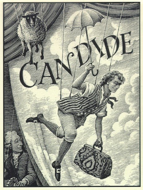 I do know that over time, Candide’s eternal optimism is dampened. He keeps trying to hold it up, but some of his fellow travelers have a much more realistic view of the world and he encounters several pessimistic philosophers along the way. But pessimism doesn’t seem to do any better than optimism. Keep in mind, of course, that I’m no philosopher myself, but it seems that the lesson to be learned from this book is that philosophy and philosophical thinking in general is the root of discontentment. It doesn’t matter if you’re positive or negative; if you’re just thinking and not working, you’re going to be miserable. Either you’ll go out and get into a bunch of scrapes, or you’ll stay at home bored. But if you fill your life with work, your life won’t be empty and you won’t get hurt. I don’t know that I agree with that either, plus it’s likely I’m interpreting the book all wrong, but that’s what I got out of it.