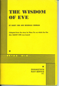 A couple years ago, I saw the movie All About Eve and really enjoyed it. The movie was based on a short story by Mary Orr called The Wisdom of Eve, a short story which was also the basis for this play. Of the three formats, the story came first (1946), then the movie (1950), and then this play adaptation (1964). While I haven’t read the short story, both the movie and the play are very similar, and I enjoyed them both.