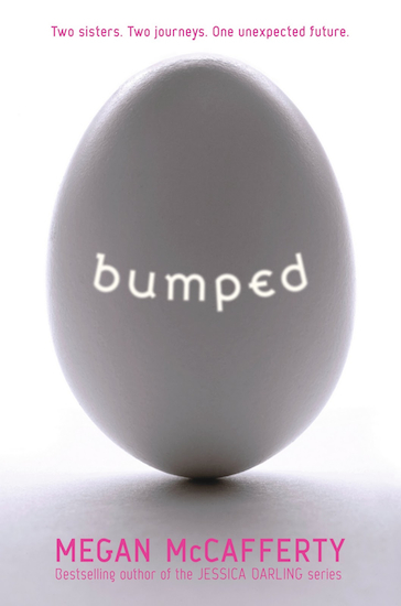 In the dystopian world of Bumped, a virus has destroyed people’s ability to reproduce after their late teens, so teen pregnancy has become a valuable commodity. Teens are getting pregnant as young as eleven. Stores sell “fun bumps” where you can wear different-sized pregnant bellies (with real moving parts to simulate fetal movement!). Slang is all pregnancy-oriented. Fast food is packed with pregnancy vitamins. And so on.