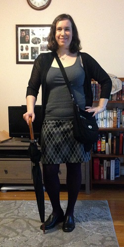 I wear a skirt almost every day. That’s what fits my body through most of its sizes. You’re right about the pockets, though. I try to match a jacket when I can, so I’ll have some pockets.