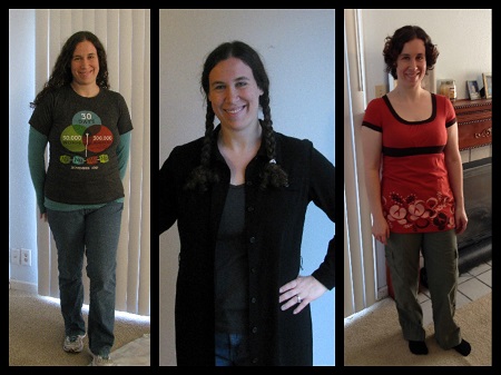collage 31. Hoodie with built-in fingers, yay! 2. I never wore this hat in public despite loving it. 3. Not a fan of tights, but if I’d gotten the right leggings, this third outfit would have been fantastic, though still an indoors outfit…