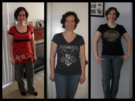 Second truth: I never could see how thin I’d gotten, and that was a significant factor in how easy it was to regain weight. Last week, I said that 155 lbs looked fat when I was there, and it did. All the pictures of me in this post are within a pound or two of 155 lbs – right on the border between a healthy BMI (154 lbs) and overweight (155 lbs). I tried to see my progress, but all I could see was how much further I had to go, how much thinner I used to be (back in my late teens and early 20s). I saw back-fat and puffy arms and thick thighs. I saw scars and stretchmarks and loose skin folds. I didn’t see anything but imperfections.