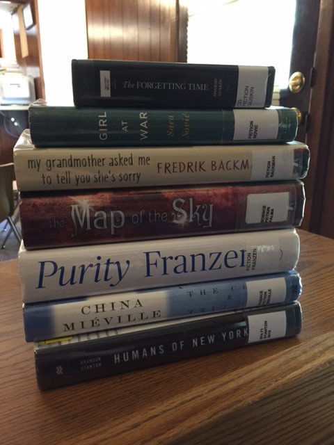 Decided to go kinda crazy at my library this week. Some of these books are from new-to-me authors. Some are authors I’d like to try again. Some are books I’ve never heard of. In all likelihood, only one or two of them will make it past my five-page trial. I think my brain is coming out of reread mode. From top to bottom: