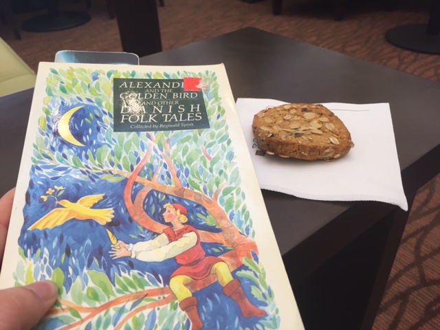 5:00 pm – Finished off another collection of folk tales. These have really made lovely collections for RaT. I’ve also been devouring crackers and jerky, plus the little snacks this hotel leaves in the lobby, mmm (above picture features a blueberry oat bar). Found a negative to the hotel situation, though: listening to the next door neighbors discuss detailed bathroom rules. Dear hotel users: please note that hotel walls are very thin.