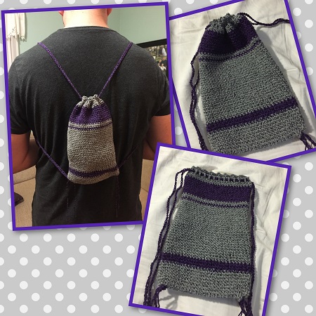 Next up, a string bag (pattern adapted from One Skein Wonders)! This was made using a split stitch half double crochet pattern, which was a bit tedious I admit, but totally worth the result. I love the pattern, the texture and thickness and colors. It’s about the right size to hold a skein of yarn and hook and other supplies, or to slip in a paperback book. Great travel bag!
