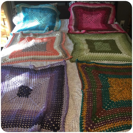 I’m satisfied, and I got the Caron Cake bug out of my system. Altogether the project took about two months. Considering the other afghan I’m working on has been ongoing for almost 18 months now, it feels good to be finished with a larger project quickly!