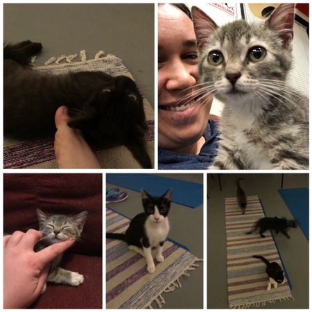 – Savasana, or corpse pose, is an interesting time to have one kitten playing with your toes and one kitten nestling into your armpit. Ha!