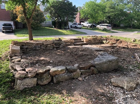 I’ve been learning (again) about my body’s exercise coping techniques. Most of my exercise involves yoga, walking (either outdoor hills/trails or indoor flat easy walks), and an occasional dance or elliptical session. My body is not quite back to the level of running, and I learned a long time ago that strength training with heavy weights does me more harm than good. This last weekend, though, I spent several hours helping with the front yard landscaping job. This meant a lot of shoveling rocky soil and hauling heavy rocks and breaking up tough ground with a pickaxe.