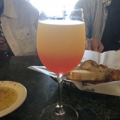 Afterwards, Jason and the boys took me out to a local restaurant called Pesto’s. We haven’t been there in a few years and hoped it would be just as good as we remembered. It was. First thing we discovered was that they had a Mother’s Day special going on – a free mimosa for moms!Β It was pretty and delicious:
