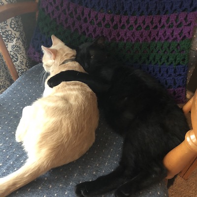 Additionally, our family (accidentally) adopted two rescue cats this year, saving both of their lives, and they became a bonded pair. Financially, while we may be struggling now as the insurance argues over who’s responsible for this current damage, we’re doing much better than we started the year, now that our Wisconsin house is off our hands and we (at one point) had our massive credit card bill paid off. I’m sure we’ll get there again after all this insurance stuff goes through. Jason has booked us on a cruise for September, which I’m really looking forward to, and we’ve almost finished xeriscaping our front yard (stalled when the indoor work began!).
