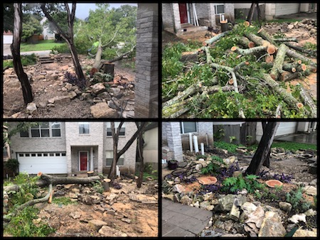 Our yard looks very different now, and we have to restructure our xeriscaping around where the new tree will go. I suppose it’s good that we were having to do this restructuring anyway due to the plumbing issues, and that there was nothing permanent for these trees to destroy as they came down. It’s frustrating nonetheless, and we just hope we can find a good place to plant the new tree, far enough from structures, driveway, plumbing, and the previous chinaberry tree roots. And we hope that the trees won’t just start growing back, given their pernicious nature. In the meantime, we’ve chosen a native, non-invasive species to put in our yard, a live oak. It’ll be years before it’s fully grown, but that’s totally worth it for a tree that won’t cause all the trouble that those chinaberries caused!
