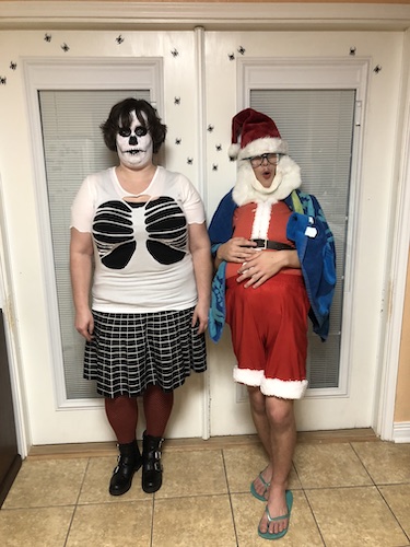 And speaking of being happy with how things came out, let’s talk costumes. One of my goals this year was to dress up for Halloween, and I had no idea what I was going to wear. Jason found a DIY skeleton image on Pinterest, and I ended up modeling a costume on that. The face paint didn’t last long – it itched too much! Ambrose’s costume came out well, too. He was originally going to be Santa Claus, but then it was 80 degrees for most of Halloween so he modified the outfit into “summer Santa” complete with flip flops and beach towel. Ha! He went to a friend’s house to help pass out candy, while Jason and I passed out candy at home. Despite there being a thunderstorm for the first hour of trick-or-treating (it was raining last year, too!), we had a good number of kids come by. And several people from the neighborhood stopped to talk to us about how great the yard was looking, and how sorry they were when we had to rip it out in September.