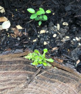 Almost all of our house news involved yard stuff this month, and there is some BIG news. Starting with the smaller things, though. First, I noticed some weird plant growth in an outer ring of one of our two chinaberry stumps (invasive trees that got chopped down last fall). Turns out, this is how chinaberry trees grow back from their stumps. Aaagh!!!!! Damn chinaberries! We chopped out the new growth, drilled holes into both stumps to cause a lot of damage, covered them with landscaping fabric so any new growth couldn’t get to light, threw down dirt, and built up rocks and other plants to hopefully prevent the trees from growing back.