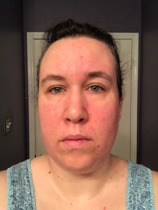 After a month of using Lunesta again, I ended up with a severe allergic rash all over my face just like in February. Clearly my body will only tolerate the medicine for a few weeks. I had to take my emergency steroid kit because my skin burned and itched so badly, raw and inflamed (pic is not altered in any way). It was awful and the steroid kit could only do so much, but it helped enough that I could let it heal over a few days. (Notably, when my face flared up like that, it caused all the inflammation issues – including anosmia and chronic fatigue – to flare up too.) Thankfully this is a short-lived issue with a very definitive cause that I can eliminate.