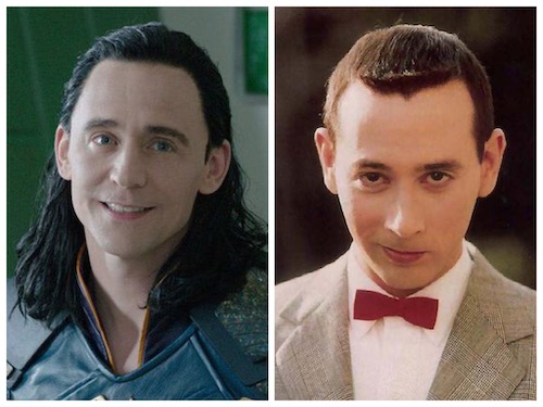 Tom Hiddleston looks like Pee-Wee Herman grew older and stopped wearing so much makeup.