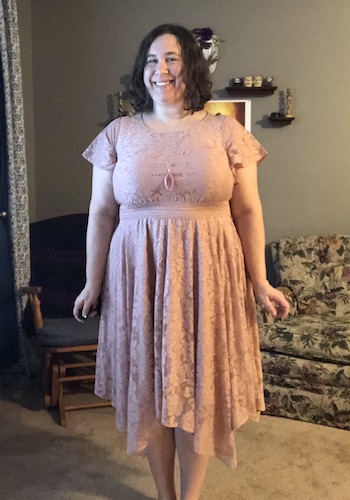 We managed to snag tickets for the whole family for an advanced screening of Downton Abbey at Alamo Drafthouse, IN FANCY DRESS!! We’re supposed to dress as Downtonesque as we can, which means I’ve been on the hunt for something plus-size, fancy evening wear, Downtonesque-enough, and that I can reuse on the fancy night(s) on November’s cruise. Sadly, most thrift stores, even the good ones, only have options for very slim evening wear. Thankfully Torrid had a good option for me. It’s not really long enough to be Downton era, but it’s similar enough in style for me, and will work for later as well. Now, to find good shoes to go with it…