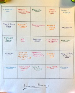 One of the things I loved most about running was attending various running events (mostly 5Ks). I was never one for large 5K events – WAY too crowded – but I loved the small ones and especially little ones that were fundraisers for very good causes. My favorite was the Run 4 Hope, which benefitted the Rape Crisis Center here in SA. Sadly, they stopped hosting it after 2017, and the event they replaced it with (the 0.5K in 2018) did not become an annual thing either. Anyway. I’ve been to a lot of 5Ks and other running-related events since my first in 2010, and these are almost universal highlights in my memories. I love them. And so what better than to couple a thing you love with a goal you’re trying to reach? Enter running bingo.