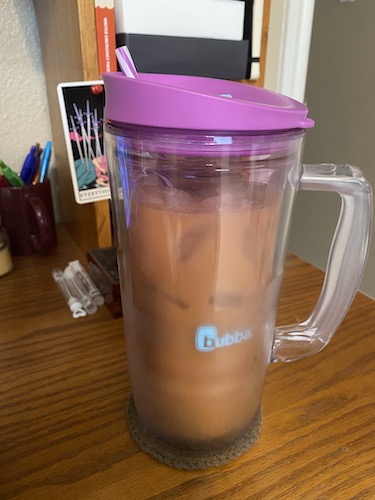 **This is somewhat of an exaggeration. I drink 3-4 tumblers of iced coffee in a day. The tumbler holds 32 oz. However, I don’t fill it to the brim, and a big chunk of the tumbler volume is holding ice, not coffee. Judging by the bottles I buy, I’m actually drinking about 48(ish) oz of actual coffee each day. That’s still way too much, but better than 96-128 oz! Unfortunately, the cream estimates aren’t exaggerated, though this week I’ve begun measuring out a tablespoon per, cutting it down quite a bit.