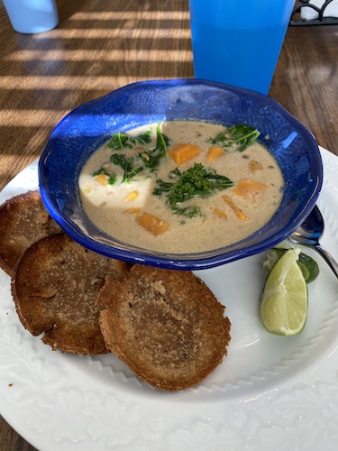 - Jason made the most delicious soup that we dubbed Hipster Soup: vegan, gluten-free, coconut-ginger-lime sweet potato soup with lentils and kale. Ha! Despite the ridiculous name, this was an amazing soup and there were homemade gf crackers to go with it.
