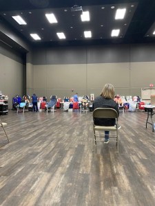 That has been my focus this week. I picked up coffee from a coffee shop even though I could have gotten it from home, because I wanted to support that particular business, and they have been doing a good job with social distancing, and it was a fundraiser for the Battered Women’s Shelter. I went to my dad’s house and had an in-person conversation with my extended family for the first time in two months, sitting ten feet apart to stay safe. My husband and kids set up our fire pit on the driveway so we could roast hot dogs and s’mores, and generally hang out outside, saying hello to people who walked by and watching all the other neighbors out in their yards and driveways. I invited my mom and another friend to set up a yard hang-out time as well, which will hopefully happen soon. I began digging up my yard to xeriscape, knowing that I can get curbside pickup at my local nursery. Jason cut his own hair, because this may just be what we have to do to stay safe for the next few years. I donated blood in another community drive yesterday (pic below), and was pleased at how safe everything has been set up.