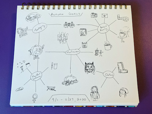As it turned out, I liked doing my Summer Break Quarantine Goals in a visual format enough that I decided to do the same for the fall. Got a bit more creative with the layout this time:
