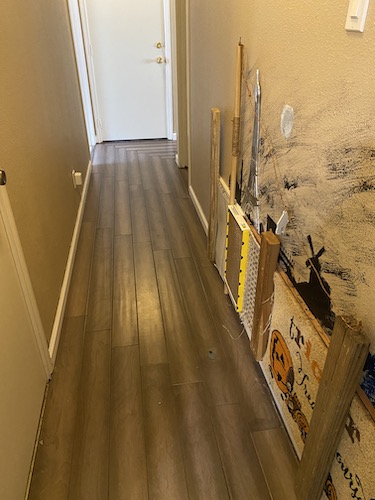 - Even though our old carpets were old and disgusting, there was no water damage on them, which we’d worried about, and the subfloor was in near-perfect condition, whew!