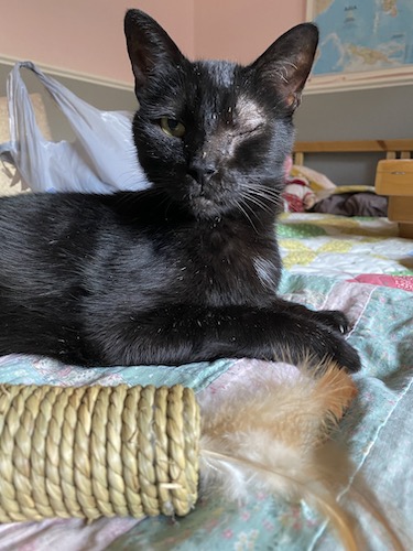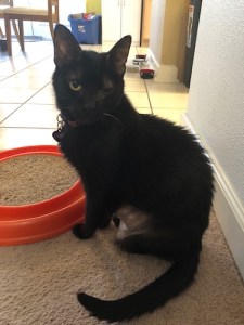 In the days since, a couple of things have happened, all of which feel hopeful. The pain meds seem to help, and he’s not wincing and walking gingerly anymore. We went down to the pet store and bought half a dozen different specialty brands of food (new store, new brands), and there was one brand that Ash actually ate the entire can of! Not just the liquid! He hasn’t eaten any solid food except treats in months. It’s not just the medicine, either, as he ate the first can before receiving any of the new meds. All of the other specialty cans we got, he ignored, but this one brand (Tiki Cats), he’s eaten every single variety we’ve opened for him. He also hasn’t once thrown up since he began eating it, and for a cat that was throwing up daily, that’s major improvement! We’ve actually gotten him to play with toys again, wrestling around with catnip balls and such, which is such a 180 change in his behavior that it’s nearly unbelievable. We just hope this isn’t a temporary boost from the meds and that he can continue to sustain the energy and improvement over time!