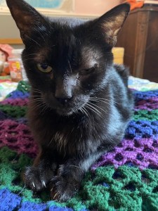 Things didn’t improve over the last few months. He was skin and bones. He wouldn’t try to jump if it meant going more than about a foot of distance. He walked gingerly and sometimes winced if you touched him wrong. He had liver spots on his face even though he’s only 11 years old. Whatever food he managed to lap up went straight through him. While he used to leave his quarantined room sometimes, he no longer did, and spent much of his time hiding in the back corner under the bed.