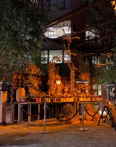 - a (safe, masked, small-group) girls’ night out to walk along the Riverwalk and then an outdoor dinner by an Ofrenda (see pic below); my dinner was SO good – if you’re ever in San Antonio, I highly recommend Mi Roti!