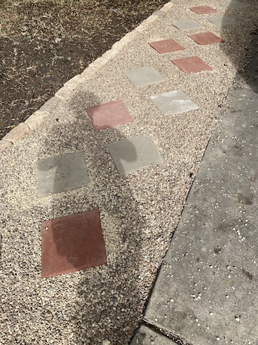 I’ve been working on the front yard landscaping. Costs haven’t been friendly the last few months, so I had to settle for just doing the path up the yard rather than both the path and seating area like originally intended. We managed to find a landscaping tool similar enough to a grub-hoe that I could remove the sod and break up the caliche ground mostly on my own. Jason put down landscaping fabric, and I laid out edging stone, gravel, and a stepping-stone path. It looks quite cute, and after Jason finishes the deck, he’s going to freehand paint some blossoms onto the stepping stones!