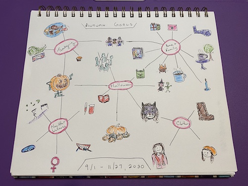This project was a lot of fun and most of these goals on here were 100% doable even if there were tons of them. I like busy autumns! And I think I’m going to continue making roughly seasonable goals for myself by drawing and coloring them in, the same way I did for summer and fall. Though…winter won’t have nearly so many. Because come on. Heh.