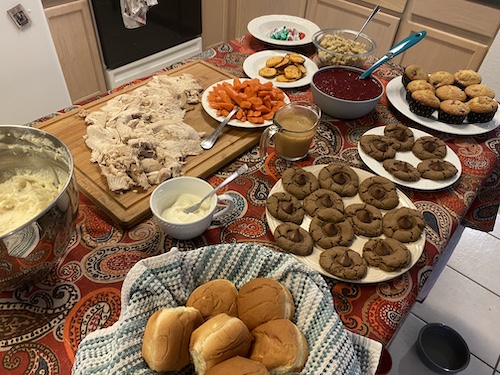 Celebrate Thanksgiving however covid allows; Make traditional Thanksgiving foods if celebrations must be immediate family only: Just like at Halloween, I’m combining these last two goals as they’re interrelated. Covid definitely affected how things had to be handled this year, and we had no major family gathering. Instead, I spent the day before Thanksgiving in a pre-holiday hike with five wonderful ladies. On the day proper, my family made all the traditional foods that my family wanted. My requests included turkey breast, craptastic store-bought stuffing (ha!), and cranberry orange muffins (which I made myself! The only thing I made. Because I am definitely not the house chef!). There were, of course, a lot more than just those foods. And plenty of leftovers.