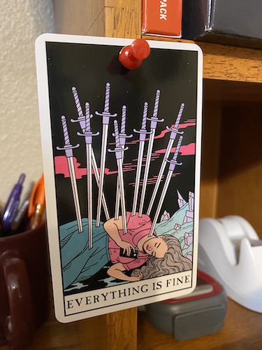 On the home front: Other than our personal lockdown, Jason’s sister had a covid relapse and couldn’t breathe, prompting her to go to the hospital by ambulance on Friday morning. She was put on fluids and oxygen, and began to feel better. Saturday saw her fever spike in the morning, but after that, she’s been fine. They finally let her leave the hospital yesterday.