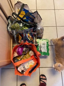 Day 5 (Th): Unfortunately, due to some miscommunications when we were prepping for this quarantine, we missed a large chunk of necessary groceries, including basics like pasta/rice as well as any vegetables at all. If we were good on veggies, I could do curbside pickup, but vegetables are difficult to pick out remotely because 1) you don’t know what will be there week to week, and 2) you don’t know the quality – Texas is difficult that way. So today I armed myself with every precaution and rushed through a visit to HEB. I feel quite bad doing this, despite my sister telling me that technically I haven’t had any exposure to covid because I haven’t been around either Morrigan or Jason for more than 30 seconds at a time. Sorry, HEB folks! Notably, I did make sure to go early in the morning when almost no one was around, so hopefully I kept any potential exposure to a minimum. Still, I’m asking for forgiveness here. We were woefully underprepared when we thought we were good.