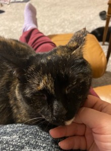 Day 3 (T): Still no symptoms/fever for Jason. Morrigan is feeling a lot better this morning and has no fever. He said he was tired and a little sore, but not feeling feverish. He’s still sleeping a lot night and day, which I think will help him recover. A bit of a fever in the evening but really low-grade (99). (Pic: Nimi misses her dad. This has been hard on the cats, unable to greet their humans when they leave the rooms to use the bathroom, or hang out with them in their bedrooms.)