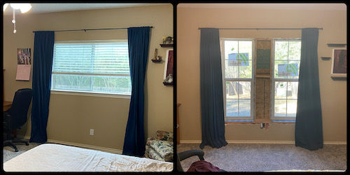 And then there was the next part of the siding saga. Let me just say, as many have said before me: KB Homes builds terrible houses. And long story short, because they build the worst houses ever, replacing our siding meant replacing the dining room and master bedroom windows. Which happened to be custom-sized, so the order for them was delayed multiple times and was unlikely to come any time soon. Soooo…we had to install new windows of new/different sizes, including building new frames, cutting out old walls, moving electrical wires, etc. Ironically, we had to do half the work (with a large hole open to our house) on a weirdly hot 80-degree day, and the other half (with a new large hole open to our house) on a weirdly cold 30-degree day. Fun! But, the new windows are in, and we’re working to get the rest of the siding on/painted, and to redo the interior walls so we don’t have open framing and insulation hanging out for the cats to get into. But hey, the one positive thing about all this is that instead of having one small sliding window in my room, I now have two tall windows! More light, woohoo!