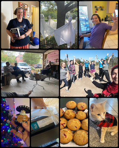 –Covid: Of course. This affected all of us in one way or another. For my immediate family, this included 1) everyone working/schooling from home for a big portion of the year, 2) some of us spending a month living in Wisconsin while the numbers spiked in San Antonio, 3) total chaos to daily rhythms and routines, 4) multiple family members and friends contracting the disease, 5) several health scares, 6) the cancelation of both Jason’s and my 20th anniversary cruise (May) and our 21st anniversary remote hiking trip (Dec), and 7) total family quarantine/lockdown for a big chunk of December.