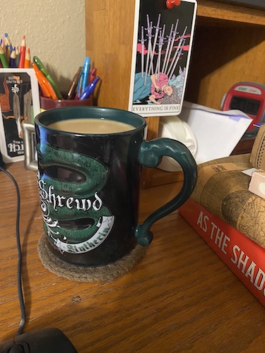 So yeah. I don’t have much to say. My head’s not really in a blogging place, probably because I’m enjoying life off the computer too much to take time out to plan blogstuff. But I still wanted to check in and say hello, while I sit in my pj pants and new comfy Inks Lake State Park lightweight hoodie, nursing my pollen-head with coffee and not the most nutritious breakfast. Heh. So hello! How are you all doing? What’s been good in your lives these days?