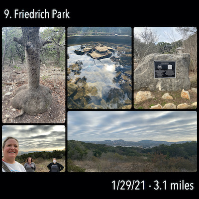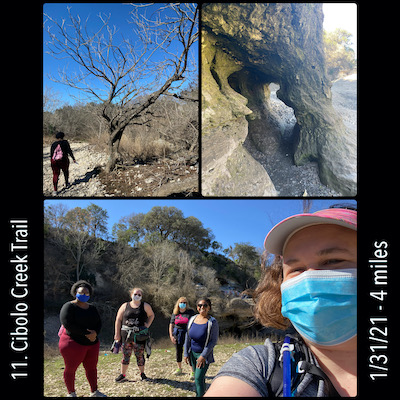 11. I was last at this park two weeks prior, and in the time between, all the water in the pond area had dried up. That let us explore the cave(ish) area, and set up a rotating series of photobomb photos that were the highlight of the hike. [Hike 7/52 for my 52 Hike Challenge.]