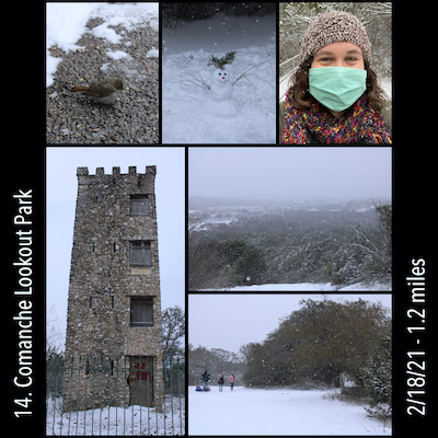 13. Who would’ve believed that not only would we get snow in San Antonio, but we’d get to take a SNOW HIKE?? In all our years in SA, there’s never been the sort of long-lasting accumulation to warrant a snow hike, so Jason and I took advantage of this! When it got warm enough for the roads to semi-melt into slush, we drove (slowly, carefully) to the closest hiking trails to us and tromped around in the snow! I took sooooo many pictures and there were a few slips (but no falls) along the way. The next day I was super sore from all the stabilizing muscles you never have to use off-snow! Ha! [Hike 8/52 for my 52 Hike Challenge.]
