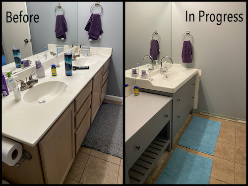 - attaching one of the two bathroom cabinets pictured above to the wall (need to buy supplies to anchor it)