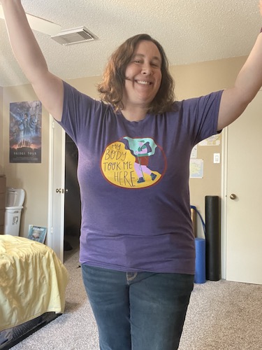 - my unlikely hikers and unsolved mysteries shirts arrived! (plus an extra unlikely hikers sticker that also says “My body took me here.” I put it on my hydroflask!)