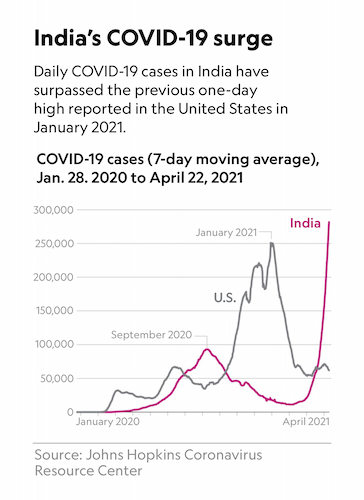 Generally over the last year-and-a-bit, the focus of these quarantine diaries has been on personal, local, and sometimes statewide happenings related to covid. Very occasionally, I’ll mention something happening on a larger scale. If I’d tried to track the covid-happenings worldwide, I would’ve given up the project ages ago. But right now, the crisis in India is so extreme that I feel the need to mention it here. The spike in cases/deaths is the most steep I’ve seen from any country this whole pandemic, and is even worse than we can tell, as many cases/deaths aren’t being reported because infrastructure, testing, the medical system, and so many other areas/departments are overwhelmed and unable to function. People are literally dying unseen and unattended in the streets. Someone – I’m not sure who to credit – has created a list of charities and folks helping on the ground in India. If anyone has the capability to help, please do.