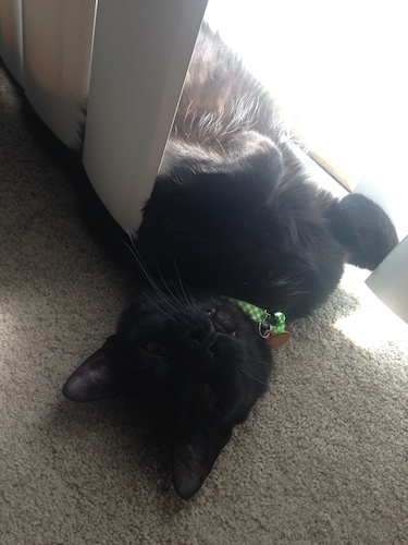 I’m not going to go into the details of his death. It was peaceful, and Jason and I were both with him, his face cradled in my hands, Jason’s hands on his side. I bawled my eyes out, not for the first time this week, and I’m sure not for the last. The vet said to take as much time as we needed, and we did, leaving only when we were ready and when we knew we needed to go home to comfort Laurence, who had been crying when we left for the vet. (Ambrose wasn’t home. We waited for this until he returned home from cat-sitting at my sister’s house in Dallas so that he could say his goodbyes, but on the day-of, he was at a friend’s house, so hopefully he got some comfort from that. He was very close to Ash.)