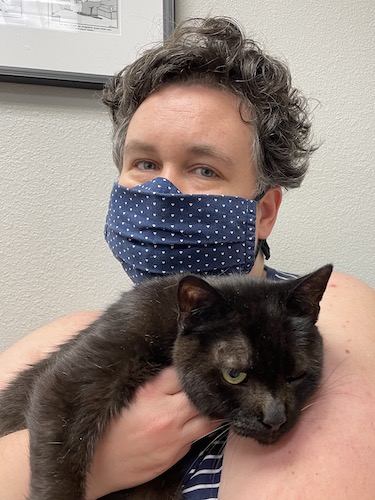 All through 2020, Ash had his ups and downs. I can’t tell you how many vet appointments he went to, and how many different ways he was treated (subcutaneous fluids, antibiotics, probiotics, steroids, painkillers, and so on). We thought we were going to lose him in October last year, but once again, he rallied. He never did gain enough weight back after he began losing in December 2019. As a fairly mid-sized male cat, he was supposed to be around 12 lbs, and never seemed to make it above 11 lbs again, often below that. And by this last month, while he was eating upwards of four cans of food, plus dry food, plus treats, every day, he just kept losing weight. We had another ultrasound that showed much larger nodes, one pressing into his gall bladder. We knew time was short, and we had to make a decision soon.