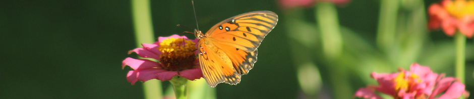 This morning, I looked out the window and saw a gorgeous butterfly in the flower garden right outside my bedroom. I couldn’t tell immediately if it was a gulf fritillary (which is one of the most common I see) with very distinct markings, or if it was a different fritillary variant. Turned out to be the former, but I got a very lovely photo of it while trying to determine this: