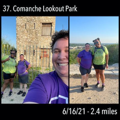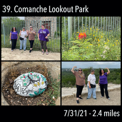 39. Woohoo! An actual group hike! My toe isn’t entirely healed, and after the previous evening’s walk, I decided to hike this in my hiking sandals. It was my second time wearing them, and sadly they gave me blisters under my feet. Oh well. But it was nice to get out with friends again, and to find a fun new offering up on the artwork on top of the hill. [Hike 25/52 for my 52 Hike Challenge.]