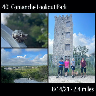 40. It is soooooo hot. We did this hike under brutal sun and 85+ degree temps at 8am. Oy. At least we got to see this adorable frog as we started and ended the hike. He was sunning himself on an exercise post, ha! [Hike 26/52 for my 52 Hike Challenge – halfway!]