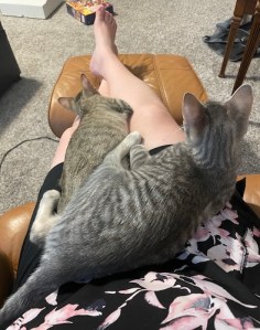 As for where they’re going to live…well, Gherkin has a home lined up for mid-September. Jason’s coworker’s in-laws are taking her in. It’s just the boys who have yet to find homes. We nearly took them to the Humane Society to surrender them in early August, but we just couldn’t do it. It would be too traumatic for them. Then the agency that took in Reaper mentioned a facebook group for rehoming strays outside of the shelter system, so that’s our next move. We haven’t done it yet, mostly because the month has been busy and stressful, but we’ll get there. Eventually, they’ll find good homes. And no, they’re still not staying with us, no matter how attached Angus is. Our home is pushing the limits with our four cats. We cannot keep another kitten or two.